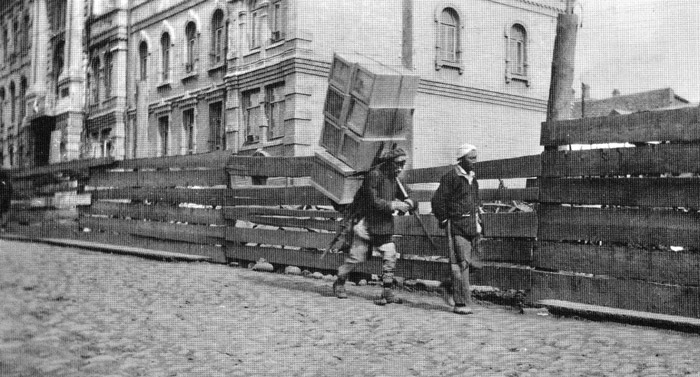 Un porteador en la calle Aleutskaya, cerca del Hotel Nice (ahora el edificio alberga el Departamento de Asuntos Internos de Primorsky Krai).