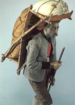 Los porteadores se encontraban en cada cruce, cerca de las tiendas y los puestos. Se sentaban en cuclillas, a menudo sin quitarse las cestas de la espalda, y cobraban vida al ver a un cliente, volviendo a su posición anterior si no se necesitaban sus servicios.
