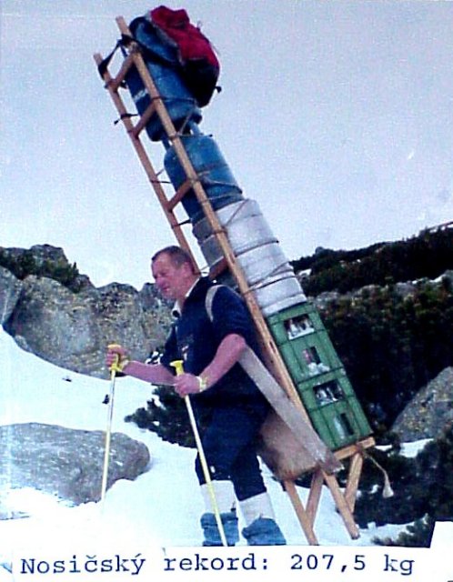 El peso récord transportado de una sola vez fue de 207 kg (hasta el refugio Zamkov),